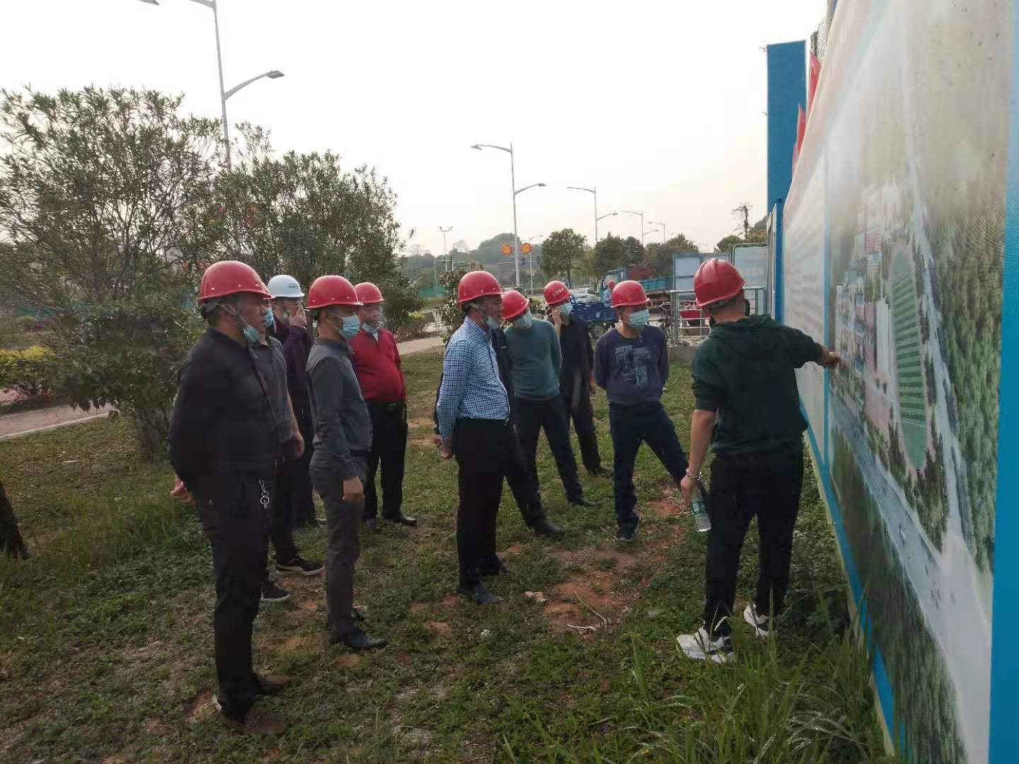 2021年3月9日,城建局祁局長、馬處長、陳科長和匯華集團董事長麥照華先生、常務副總經理董桃元先生、副總經理廖志峰先生等領導蒞臨企石七中項目現場指導工作。