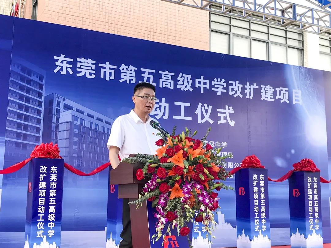領(lǐng)導(dǎo)致辭 在東莞市第五高級(jí)中學(xué)改擴(kuò)建項(xiàng)目動(dòng)工儀式上,廣東鴻高建設(shè)集團(tuán)有限公司代表劉海軍先生、東莞市第五高級(jí)中學(xué)校長(zhǎng)楊志堅(jiān)先生、東莞市萬(wàn)科房地產(chǎn)有限公司代表吳學(xué)昌先生、東莞市城建工程管理局四級(jí)調(diào)研員李立新先生等領(lǐng)導(dǎo)先后致辭,并與廣東匯華建設(shè)集團(tuán)有限公司副總經(jīng)理廖志峰先生等嘉賓一起為此次改擴(kuò)建項(xiàng)目剪彩。