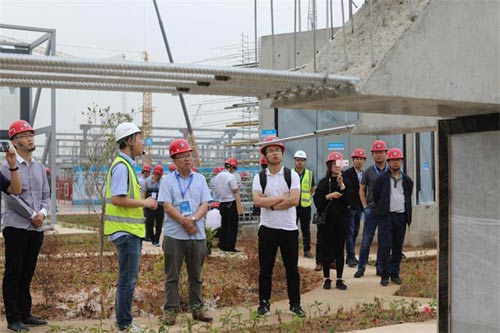 交流會上,項目技術(shù)總監(jiān)楊曉毅分享了《基于BIM技術(shù)的特大型多方協(xié)作智慧建造管理》,對項目智慧工地驅(qū)動工程施工現(xiàn)場管理升級進(jìn)行了成果展示交流。隨后,觀摩團(tuán)隊乘坐大巴參觀了項目的主要施工區(qū)域,在項目管理人員的隨行講解下現(xiàn)場觀摩了世界領(lǐng)先的智慧工地、裝配式鋼結(jié)構(gòu)建筑、安全文明標(biāo)準(zhǔn)化工地、先進(jìn)工藝工法等,并通過現(xiàn)場二維碼掃碼查看項目施工現(xiàn)場、辦公生活區(qū)及配套設(shè)施等720°全景,體驗身臨其境的視野,全面深度了解項目建設(shè)。